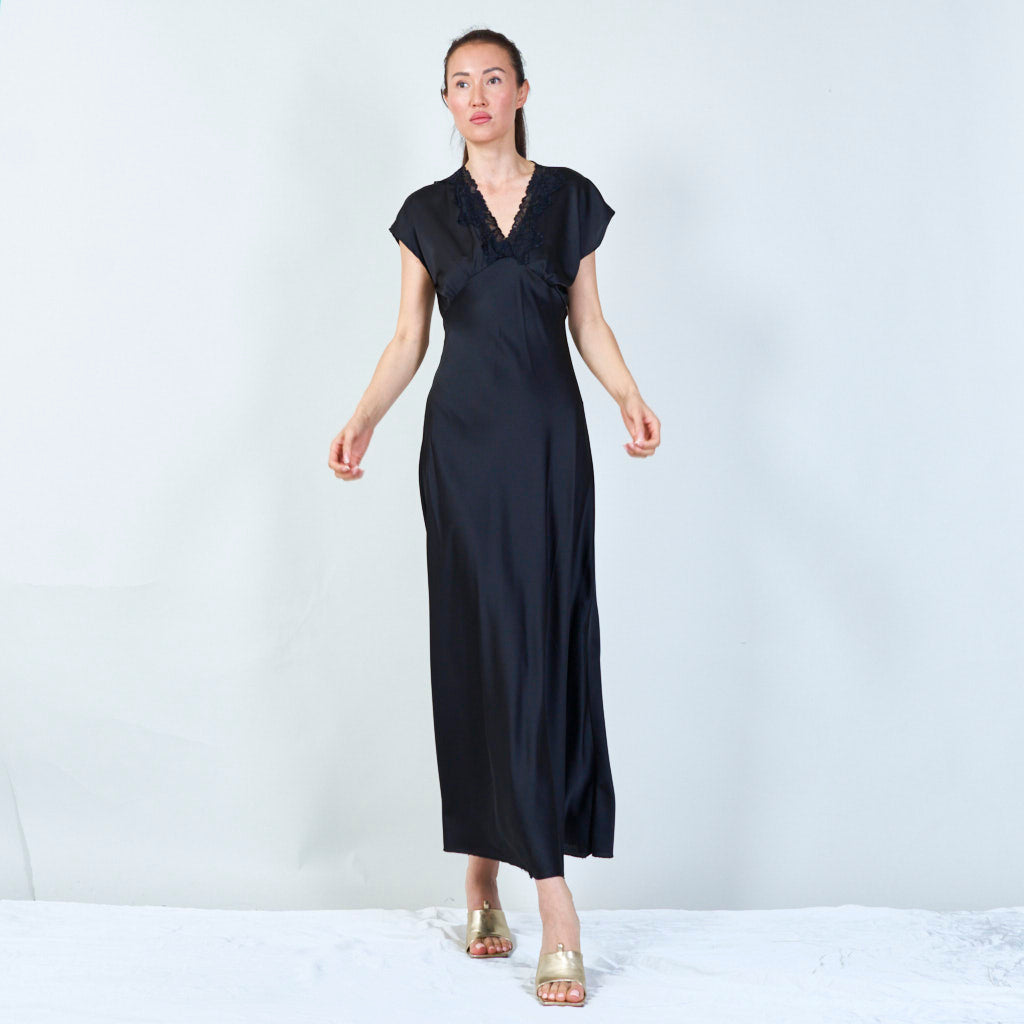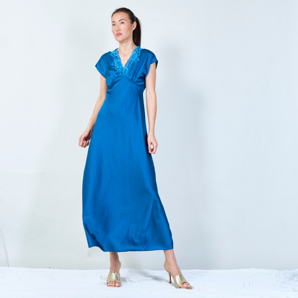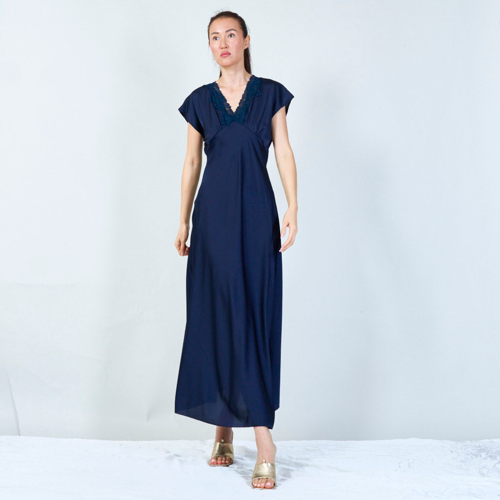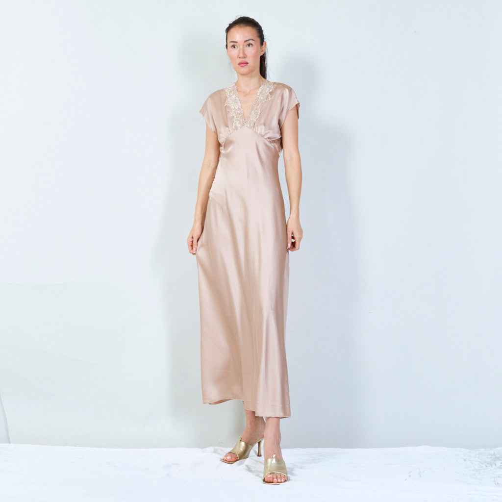 Sophisticated lace-trimmed v-neck gown