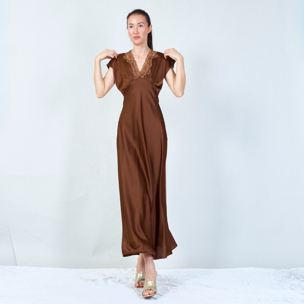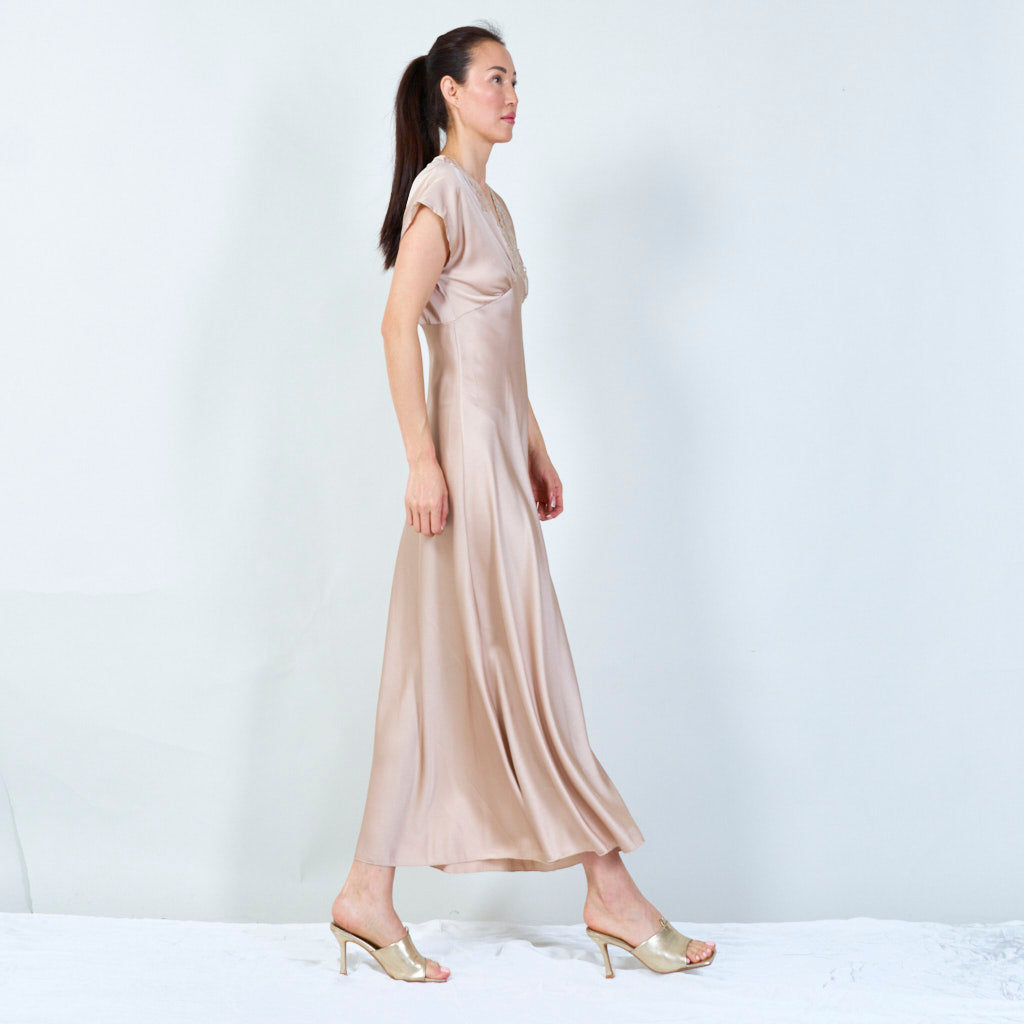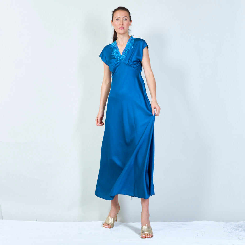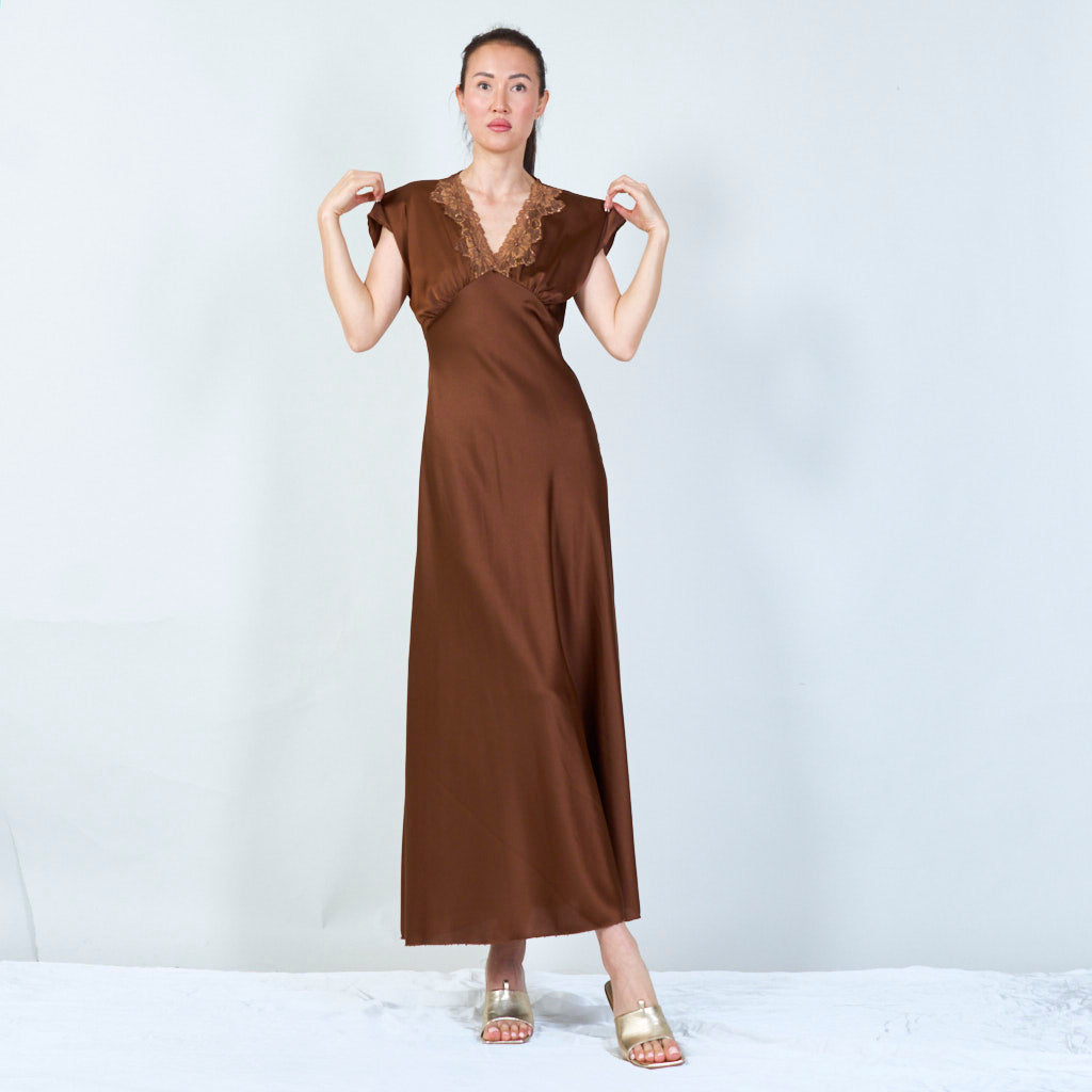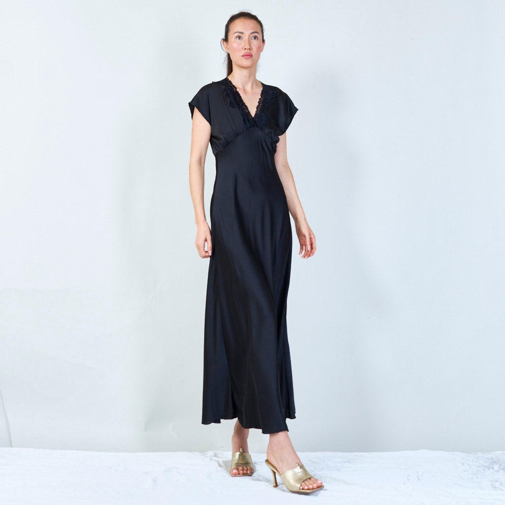 Sophisticated lace-trimmed v-neck gown