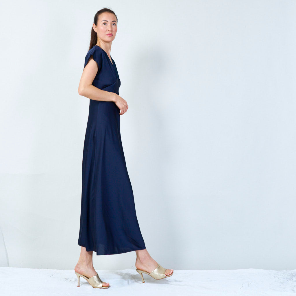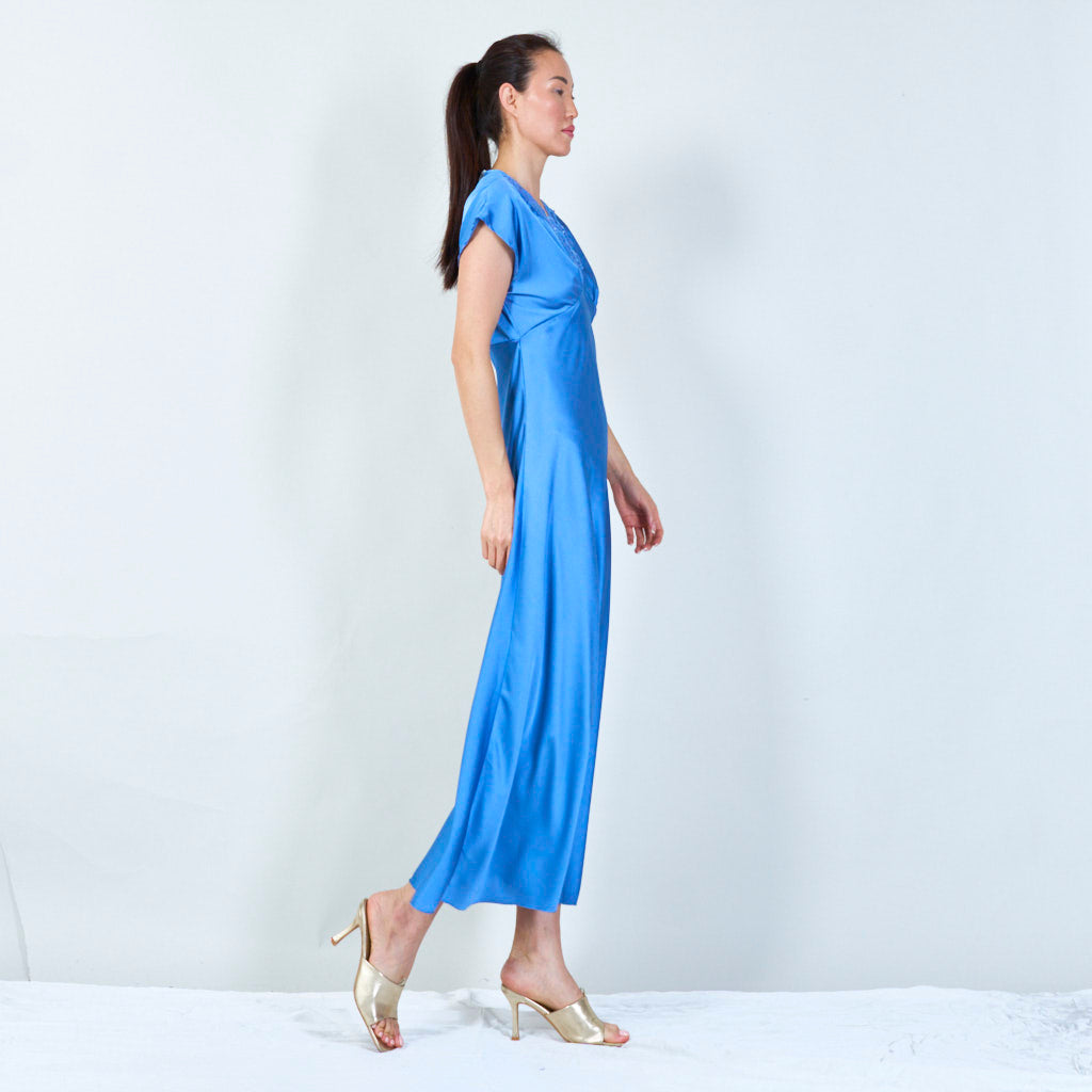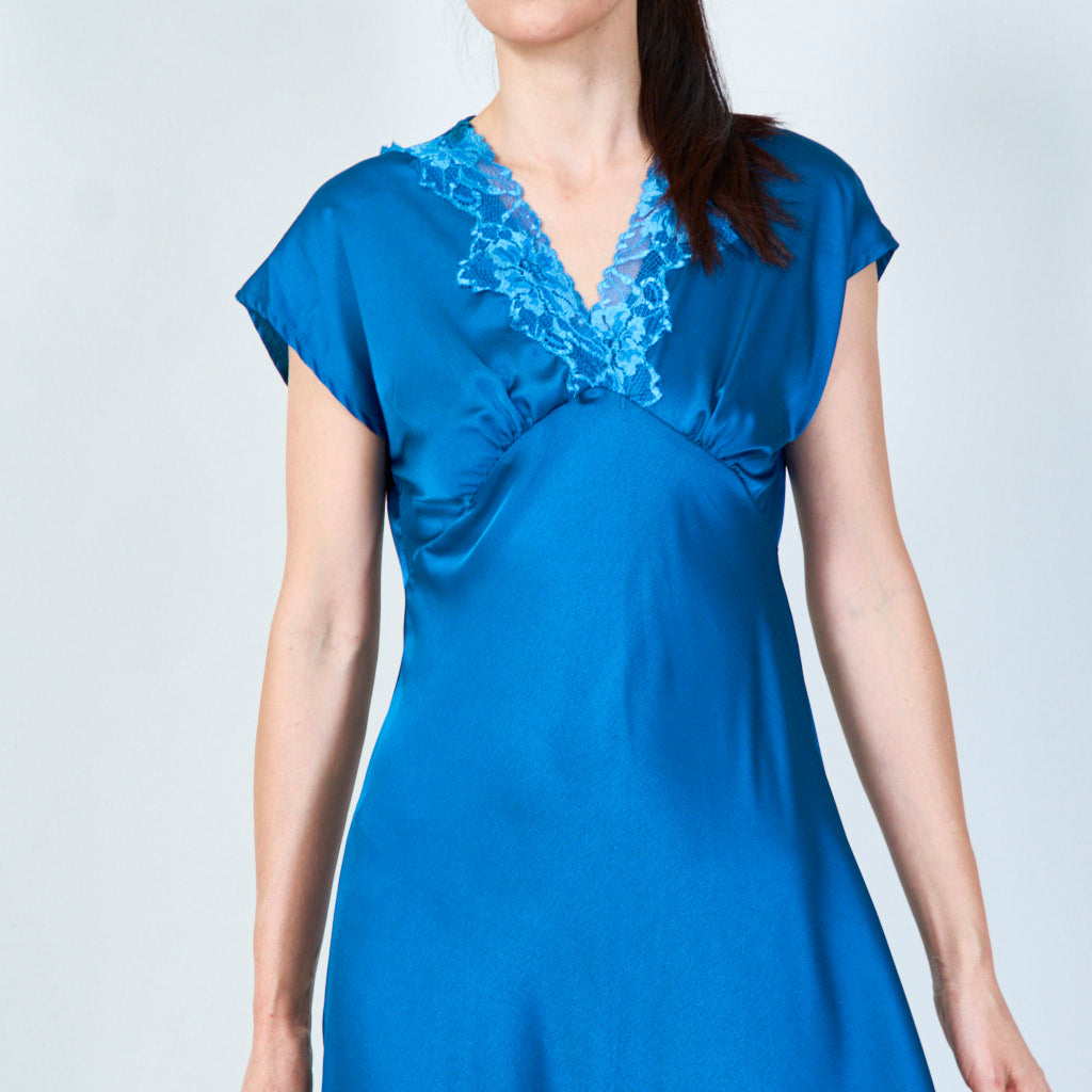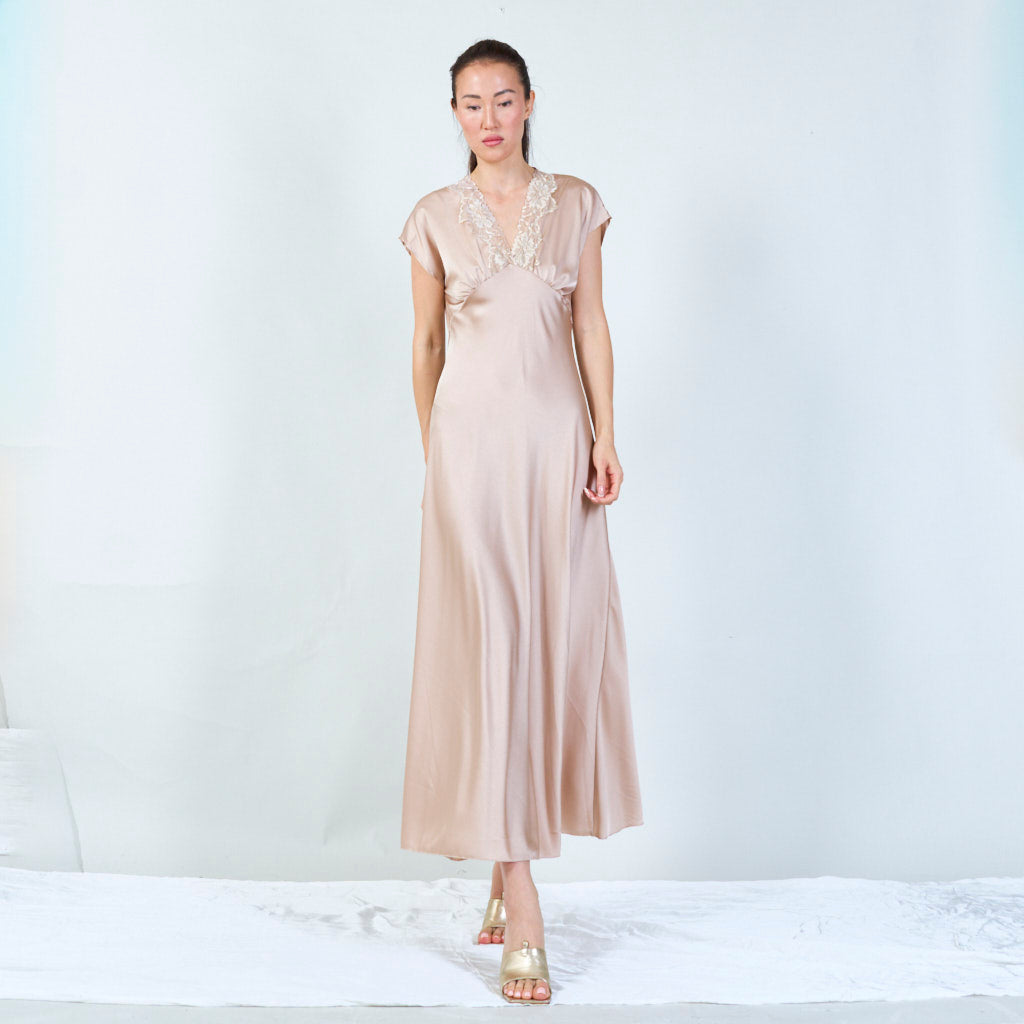 Sophisticated lace-trimmed v-neck gown